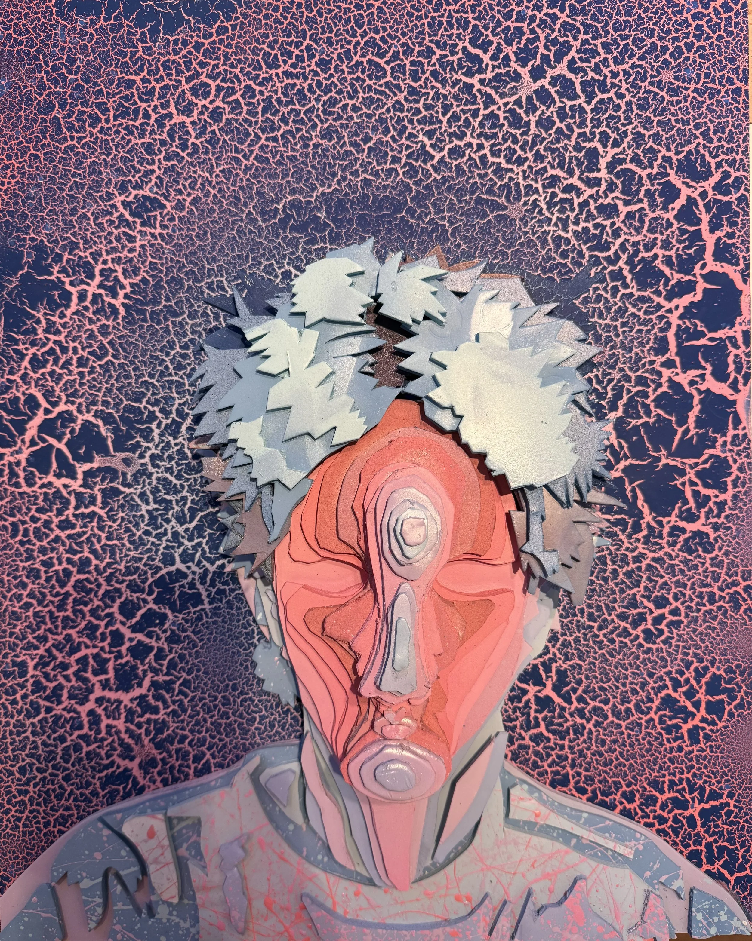 ME Somewhere, Spray paint, foam board sculpture on mat board, 16” x 20”x4.5”